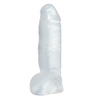 Dodaj do listyPenis o realistycznym kształcie wykonanym z przezroczystej różowej galaretki, w tym żył, fallicznej głowy, lekko zakrzywionej iz przyssawką u podstawy.
