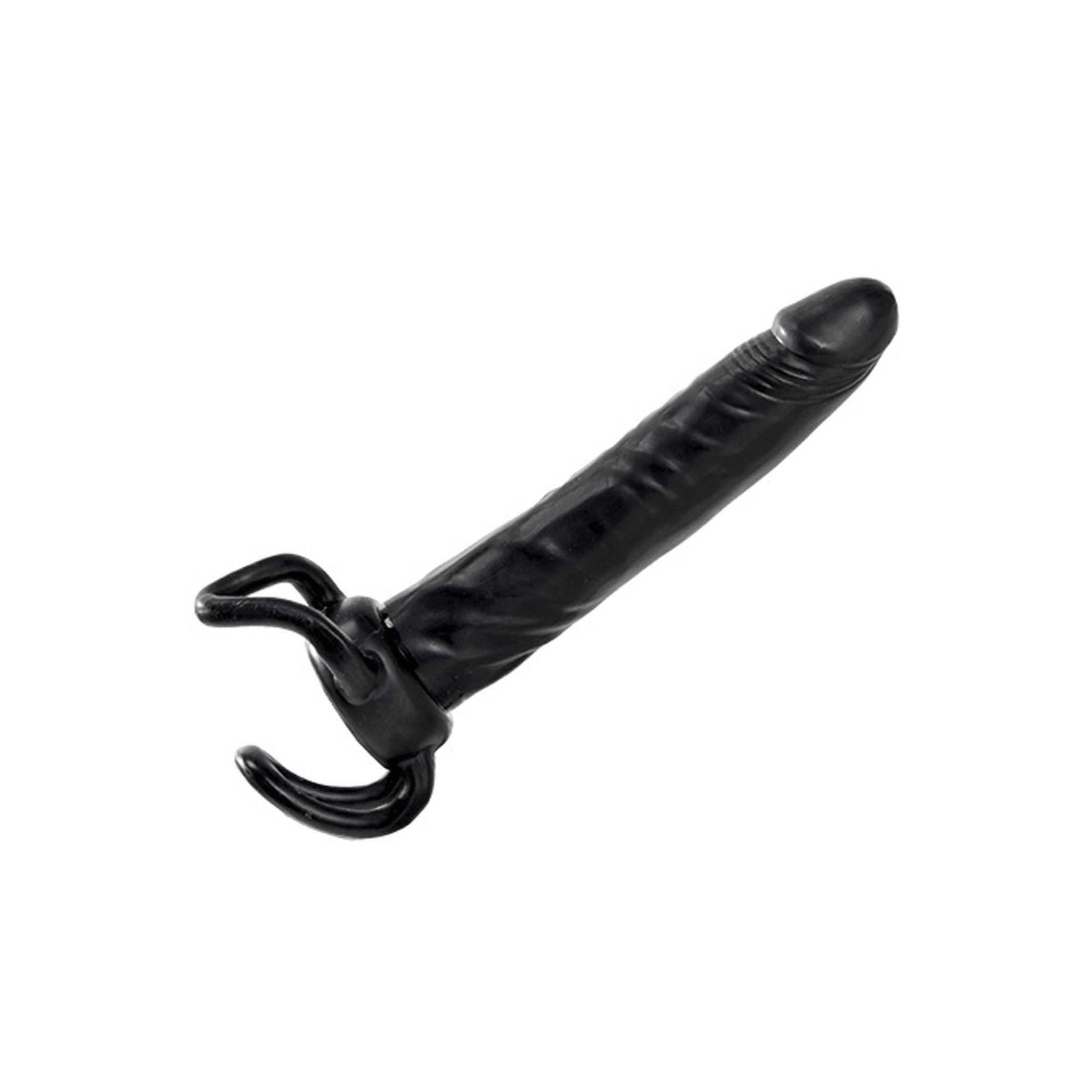 Mniejsza pętelka u podstawy dilda działa jako pierścień wzmacniający sprawność penisa, natomiast większa część obejmuje jądra, zapewniając mocny uścisk.