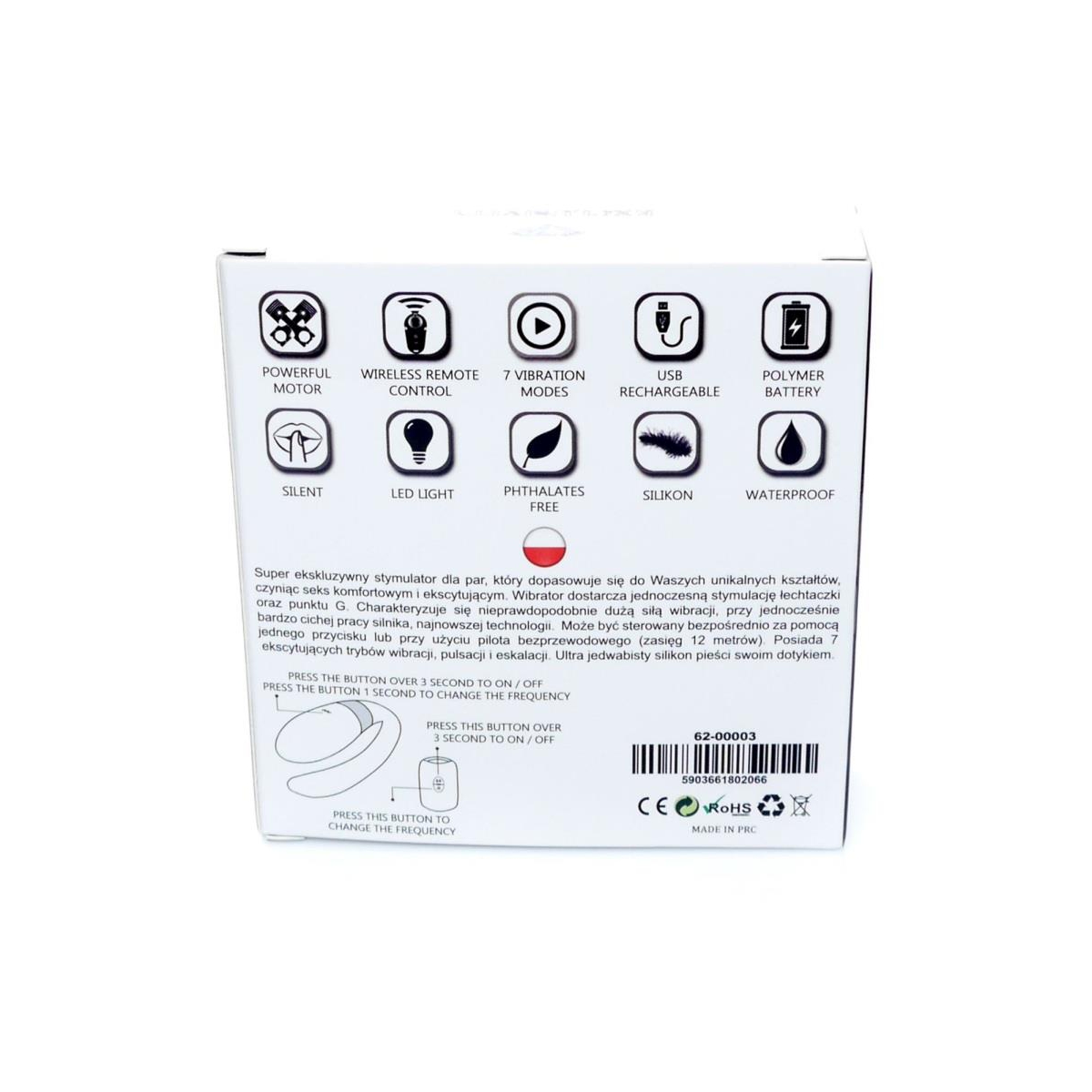 - Idealny zarówno do zabaw w pojedynkę, jak i z partnerem - również w miejscach publicznych dzięki zdalnemu sterowaniu.